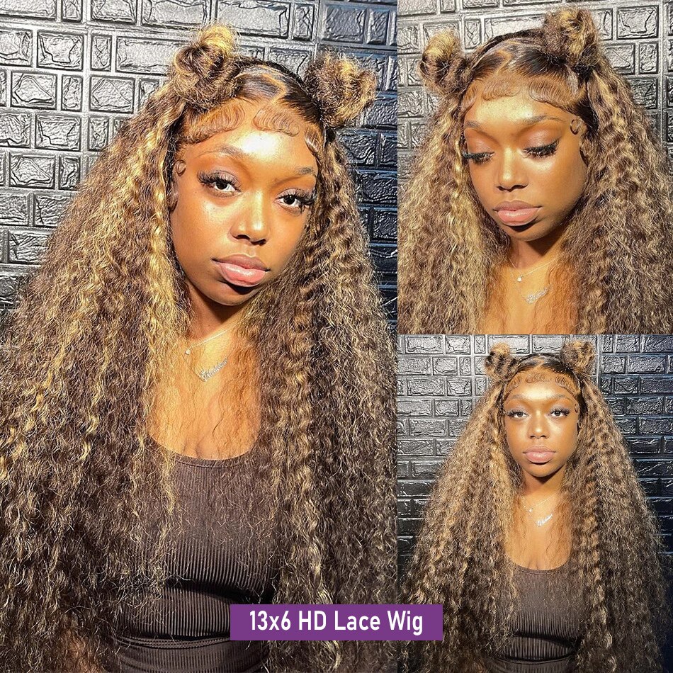 13x6 13X4 الدانتيل الباروكة شعر الإنسان 30 بوصة تسليط الضوء على العسل البني مجعد الدانتيل الجبهة الباروكات موجة عميقة الدانتيل الجبهة الباروكات للنساء