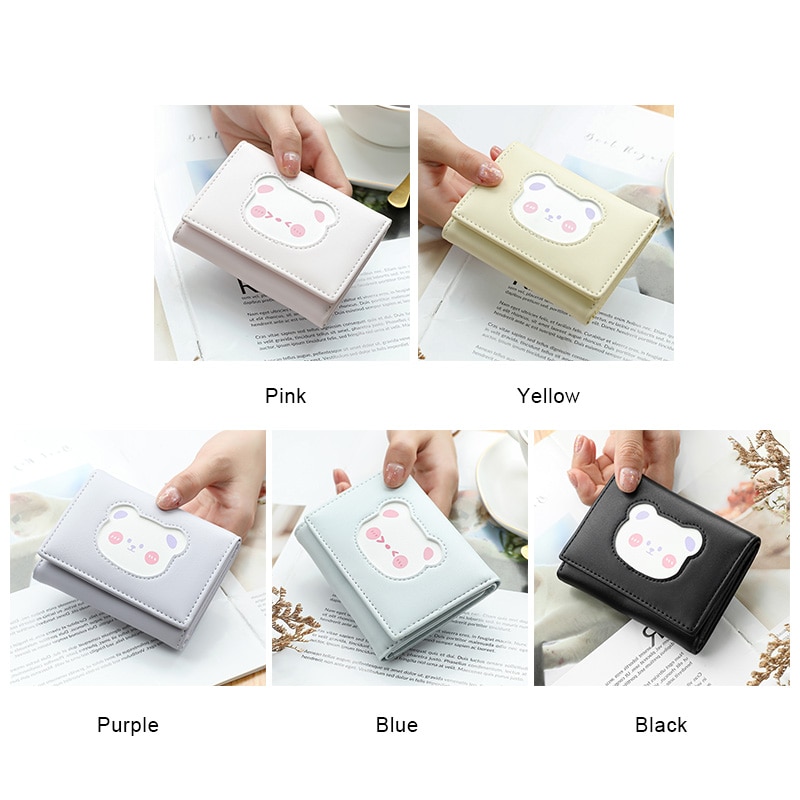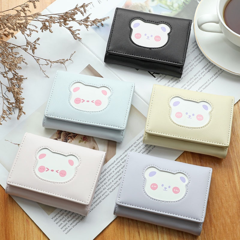 العلامة التجارية مصمم لطيف الدب الصغيرة ثلاثة أضعاف محافظ للنساء لينة بولي حافظة حافظة بطاقات جلدية محفظة السيدات موضة المحافظ الإناث