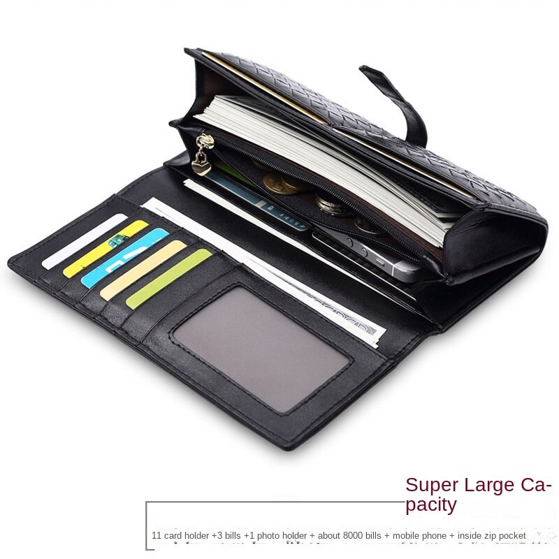 نمط جديد كبير طبقة علوية جلد العجل لينة سلسلة دعوى كليب موضة محفظة طويلة 2023