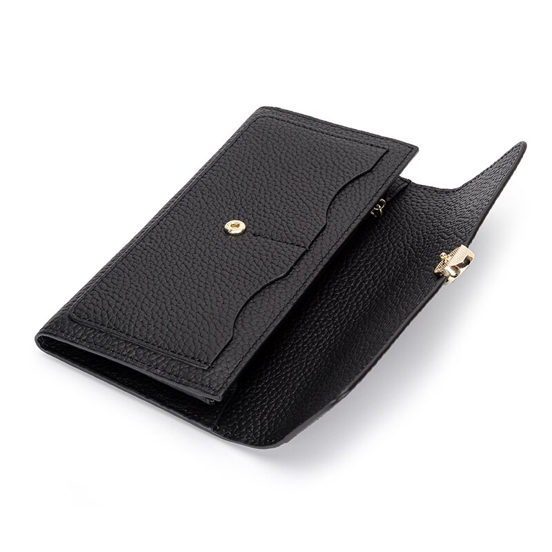 نمط جديد كبير طبقة علوية جلد العجل لينة سلسلة دعوى كليب موضة محفظة طويلة 2023