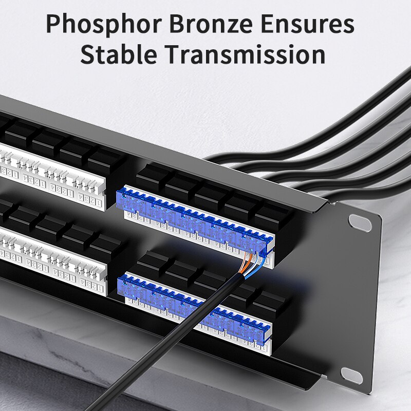 أمبكوم 19 "رف شنت أونسكريد RJ45 الهاتف صوت التصحيح لوحات متوفرة في 1U 25 و 50 ميناء الإصدارات لضمان أقصى قدر من الاستفادة من مساحة الخزانة. بالإضافة إلى ذلك ، يتم تزويد جميع الألواح بميزات مرساة الكابل المركزية والجانبية ونقاط التأريض المزدوجة. يوفر الجزء الخلفي من اللوحة اختيار ما بين 60 إلى 150 أزواج صوت لتناسب اتصالات خط PABX & PSTN. يتم تحديد جميع المنافذ عدديًا. يتم تزويد كل لوحة مع تسمية الأسلاك ، العلاقات كابل و لوحة تصاعد الملحقات ، مدير الزوج ، الأرض الرصاص و شكل قصير تعليمات التثبيت.