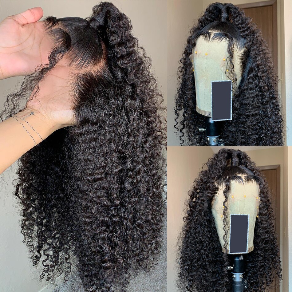 13x4 غريب مجعد الدانتيل الجبهة خصلات الشعر المستعار الإنسان للنساء السود البرازيلي شفافة الدانتيل الباروكة أمامي 180%-220% الكثافة KF الجمال U