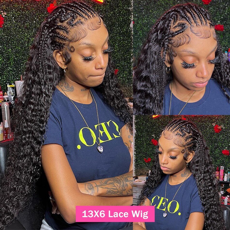 باروكات شعر بشري مفرودة 13x6 عالية الوضوح 250% 32 40 بوصة باروكة شعر أمامية واسعة مموجة باروكة دانتيل 4X4 مجعد للنساء