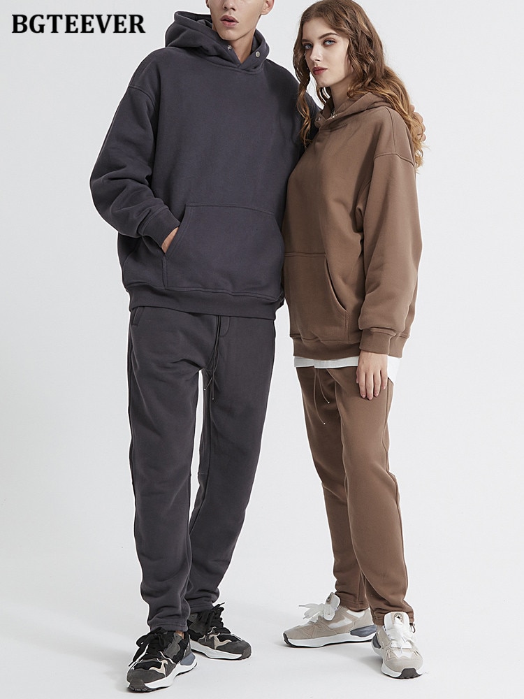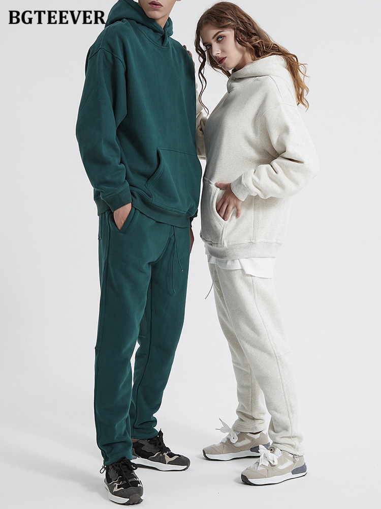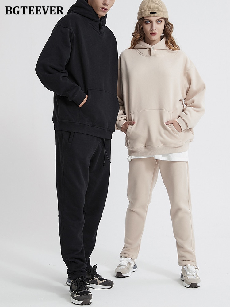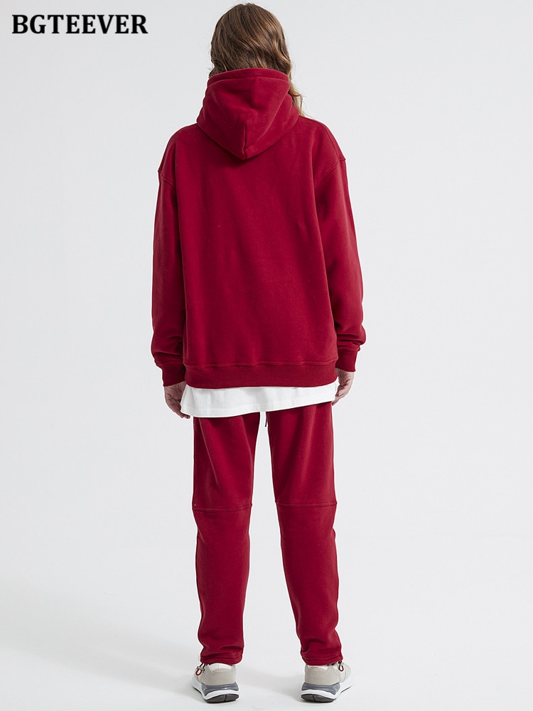 BGTEEVER الخريف الشتاء رشاقته الدافئة رياضية النساء مقنعين الصوف بلوزات و سراويلي حريمي قطعتين بنطلون مجموعة الإناث