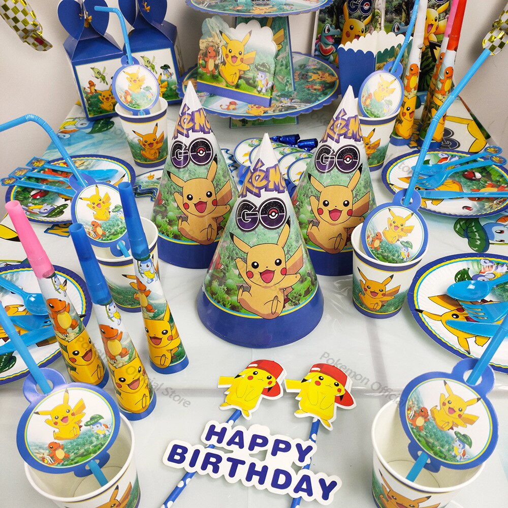 بوكيمون الأطفال حفلة عيد ميلاد الديكور بيكاتشو احباط بالونات لوازم الطاولة/المائدة قابل للتصرف مجموعة لوحة منديل للأطفال لوازم الحفلات