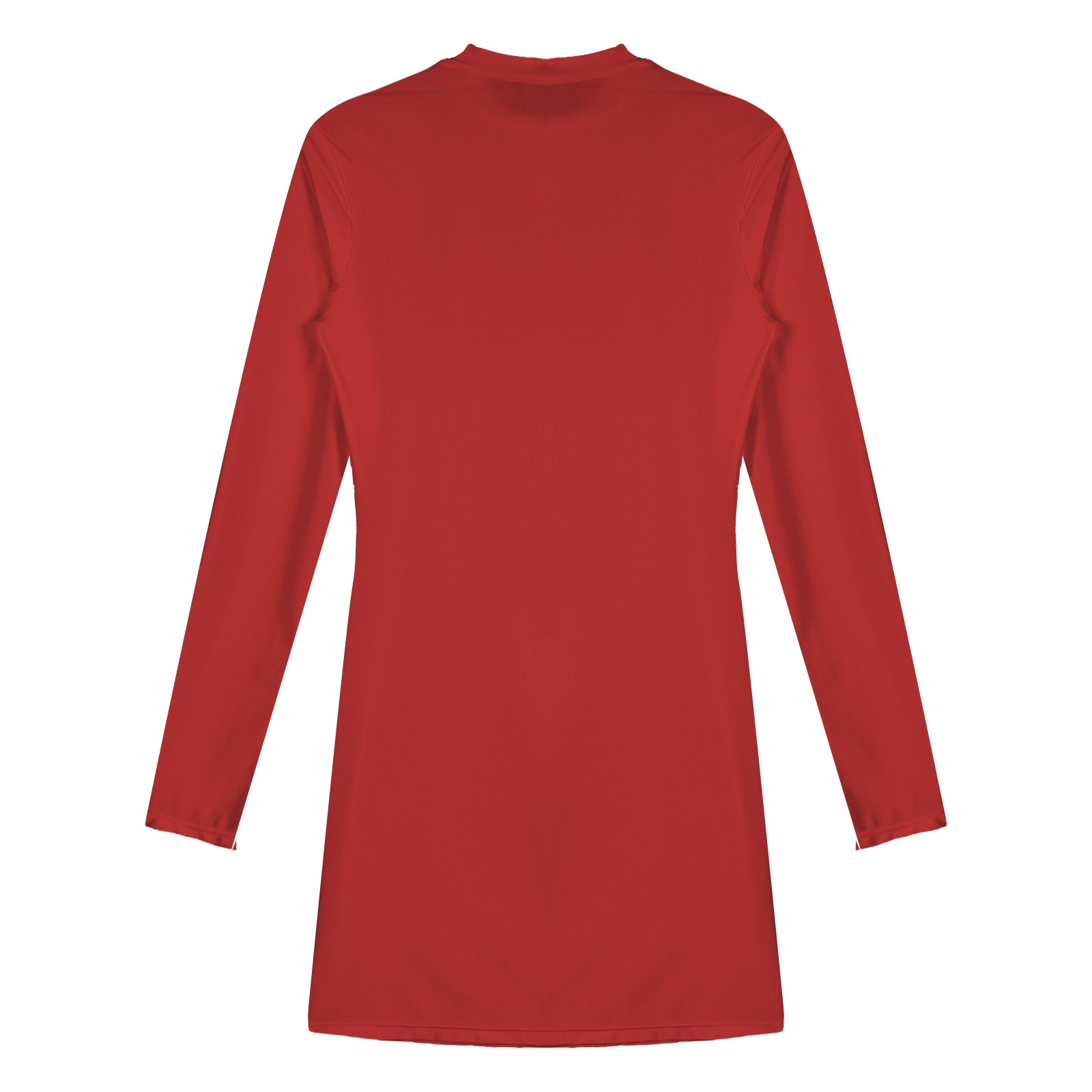 فستان بودي كون بأكمام طويلة للنساء ، رقبة وهمية ، لون سادة ، سحب على الإغلاق.