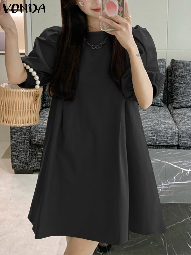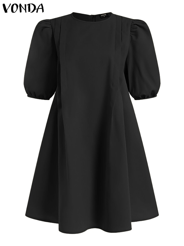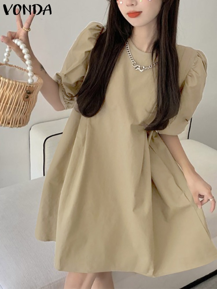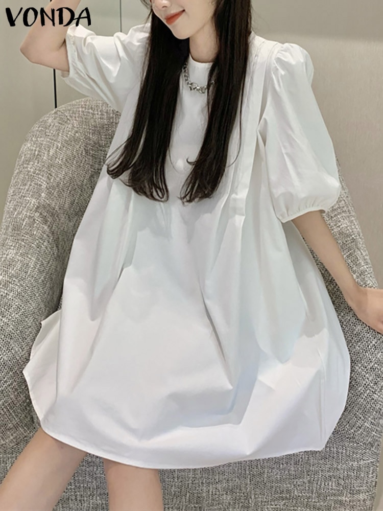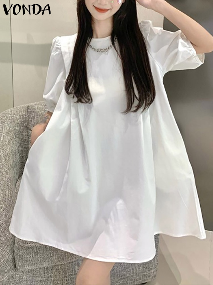 فوندا 2022 الصيف المرأة قصيرة الأكمام فستان قصير مثير شاطئ فستان الشمس عطلة عادية الصلبة مطوي رداء حفلات فساتين قصيرة