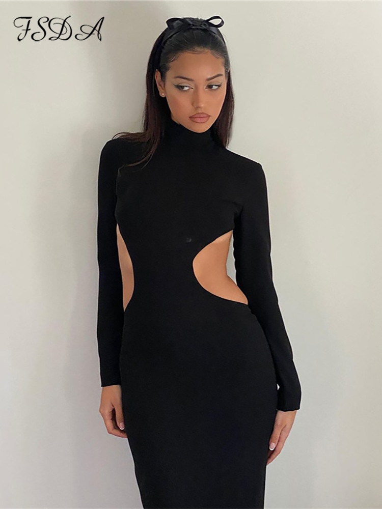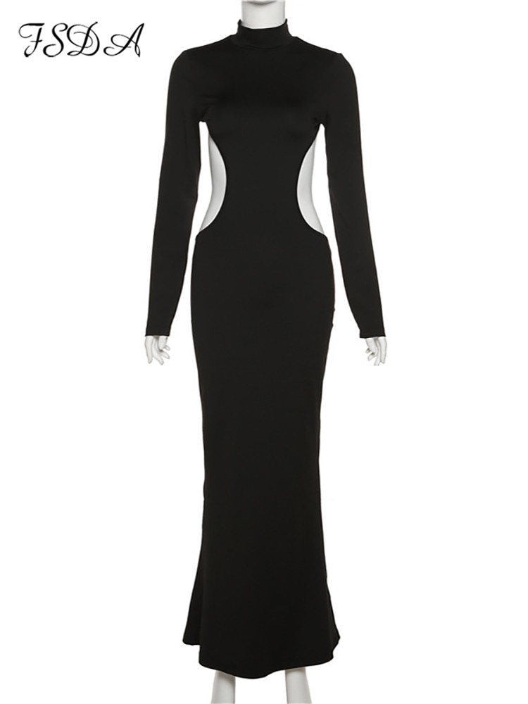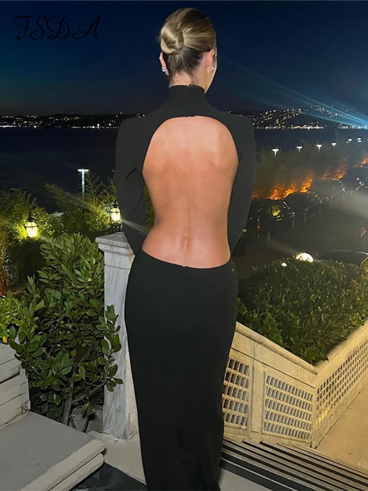 FSDA 2022 فستان أنيق مثير بدون ظهر للنساء فستان حفلات للخريف والشتاء بأكمام طويلة
