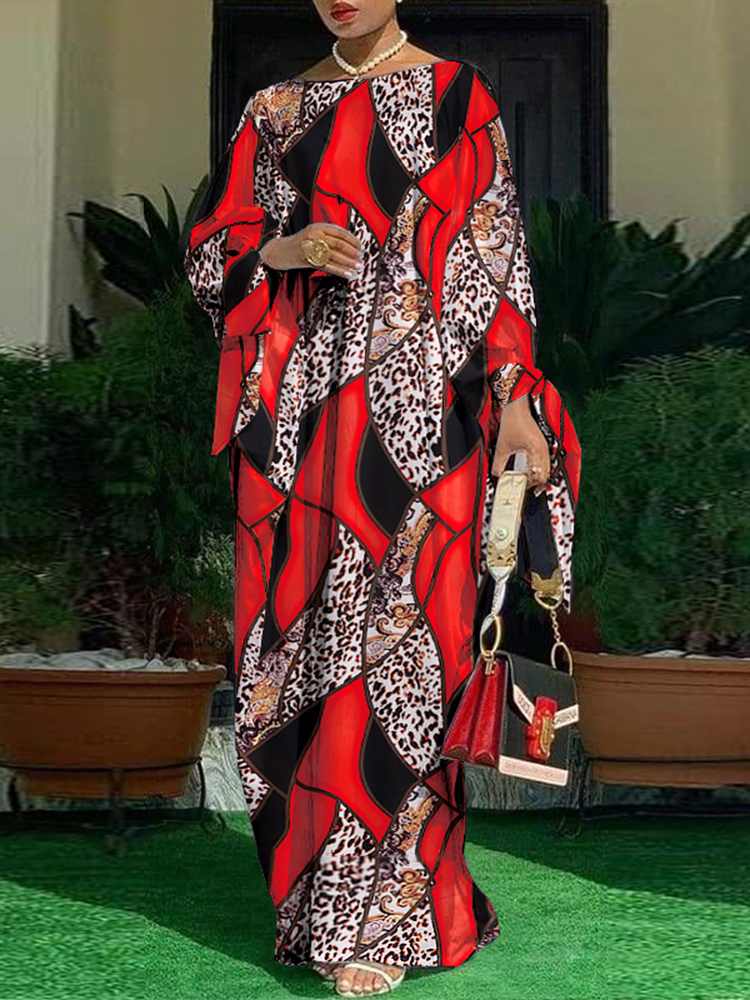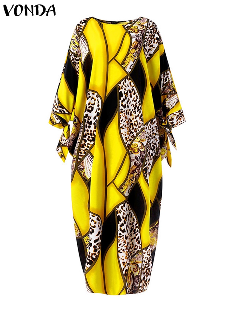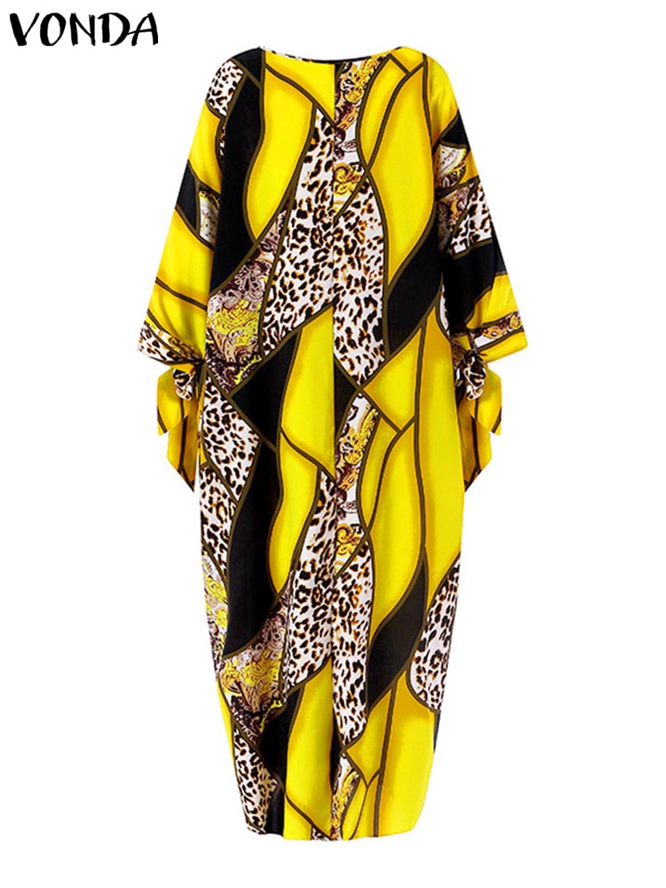 فستان ماكسي بوهيمي ماركة فوندا لعام 2023 فستان نسائي للخريف فستان صيفي مثير بأكمام مضيئة ومزين بطيات فساتين طويلة فضفاضة بطبعة الفهد