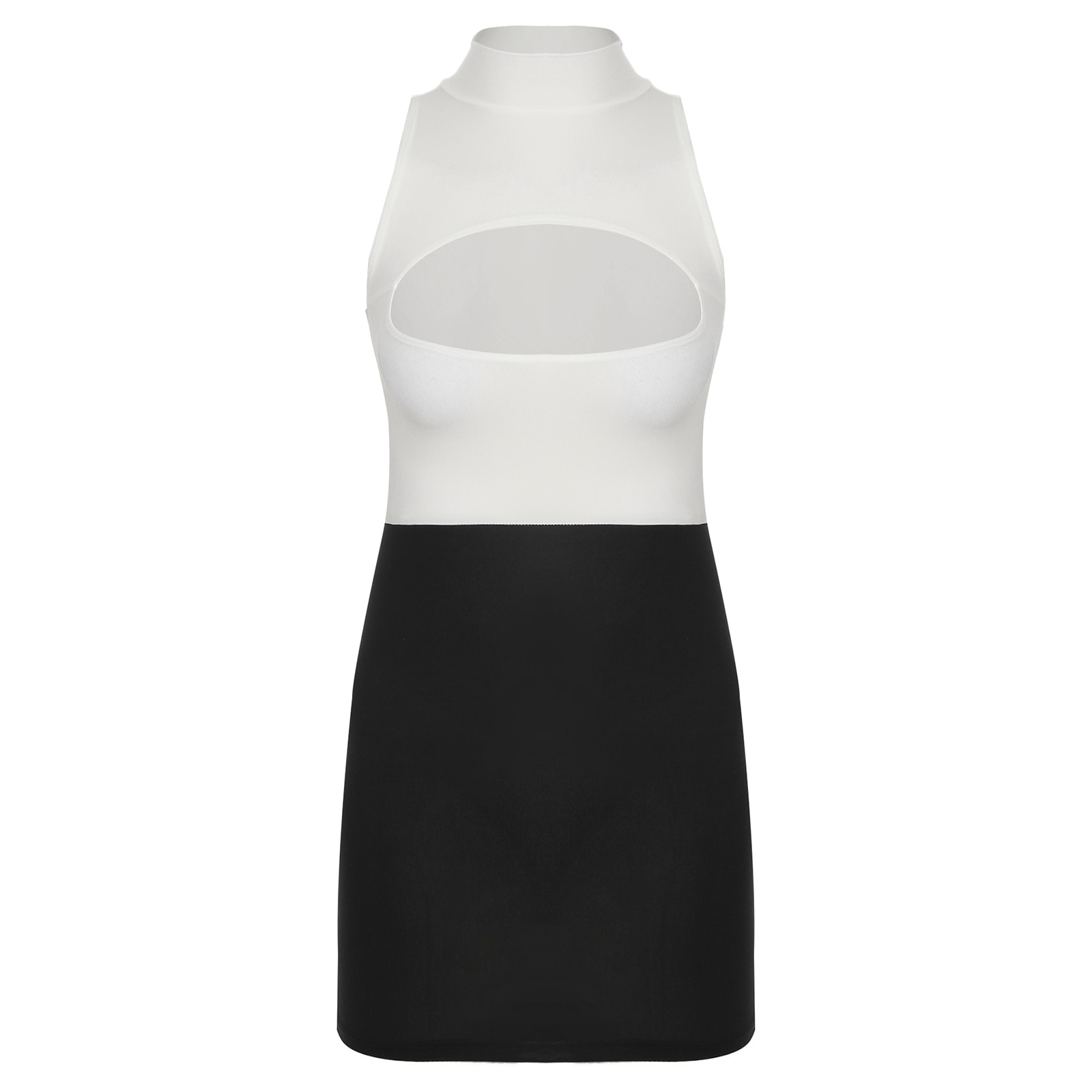 كتلة اللون المرقعة ، وهمية الرقبة ، بلا أكمام ، تصميم انقطاع ، تناسب ضئيلة.