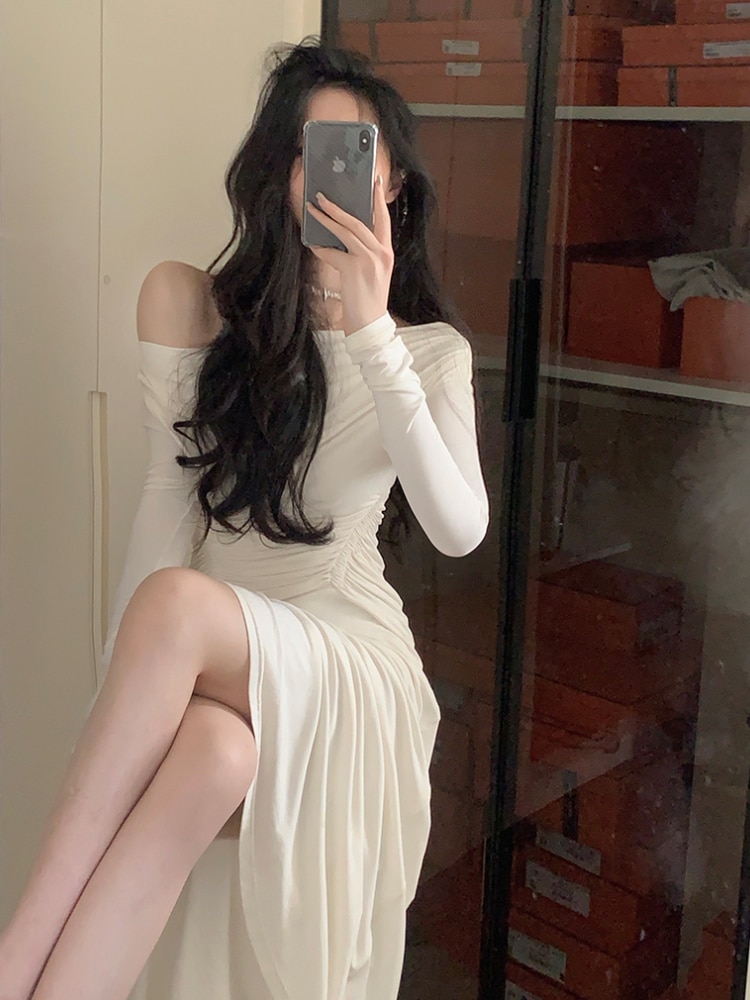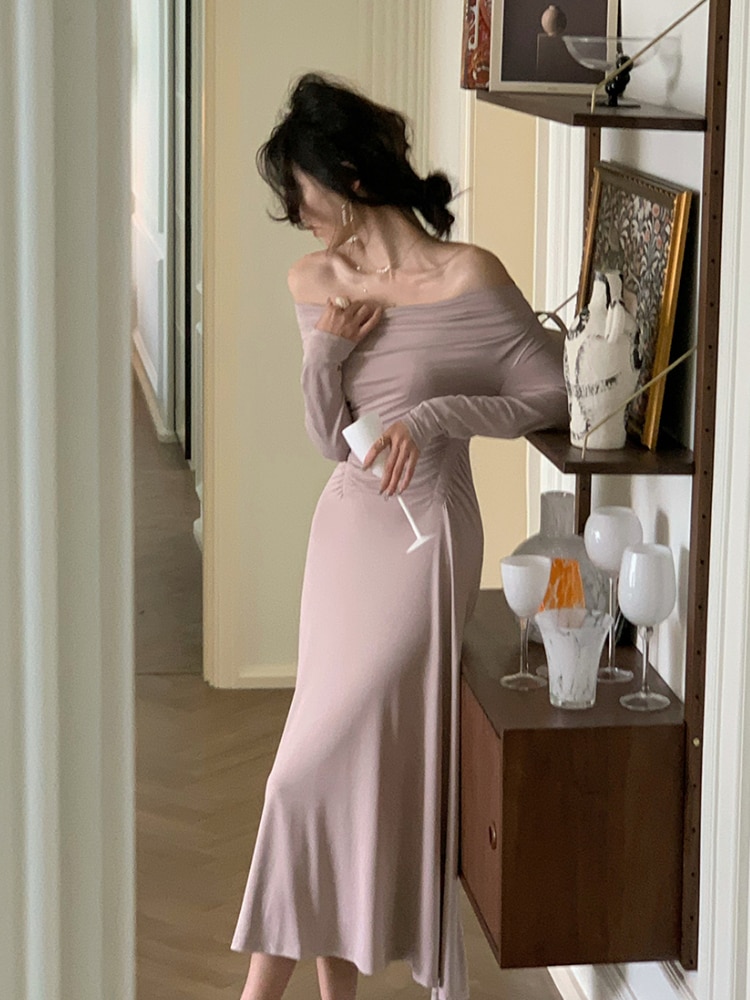 فستان سهرة أنيق عتيق بأكمام طويلة مكشوف الأكتاف للنساء ملابس مثيرة للسيدات للحفلات موضة خريف وشتاء 2022 جديد