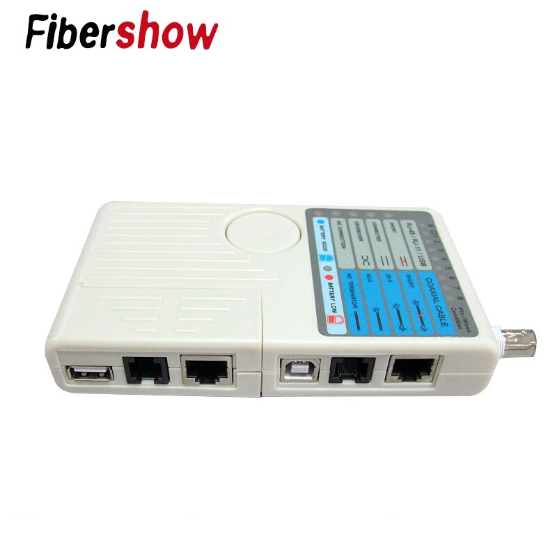 اختبار 4 أنواع من الكابلات: RJ-45 ، RJ-11 ، أوسب و بنك. اختبار الأسلاك المثبتة أو كابلات التصحيح.