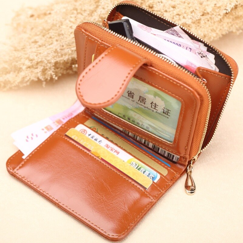 جديد النفط الشمع قصيرة محفظة للنساء الصلبة شعرية المرأة محفظة عملة محفظة صغيرة محافظ سستة بولي Leather جودة الجلود الإناث محفظة