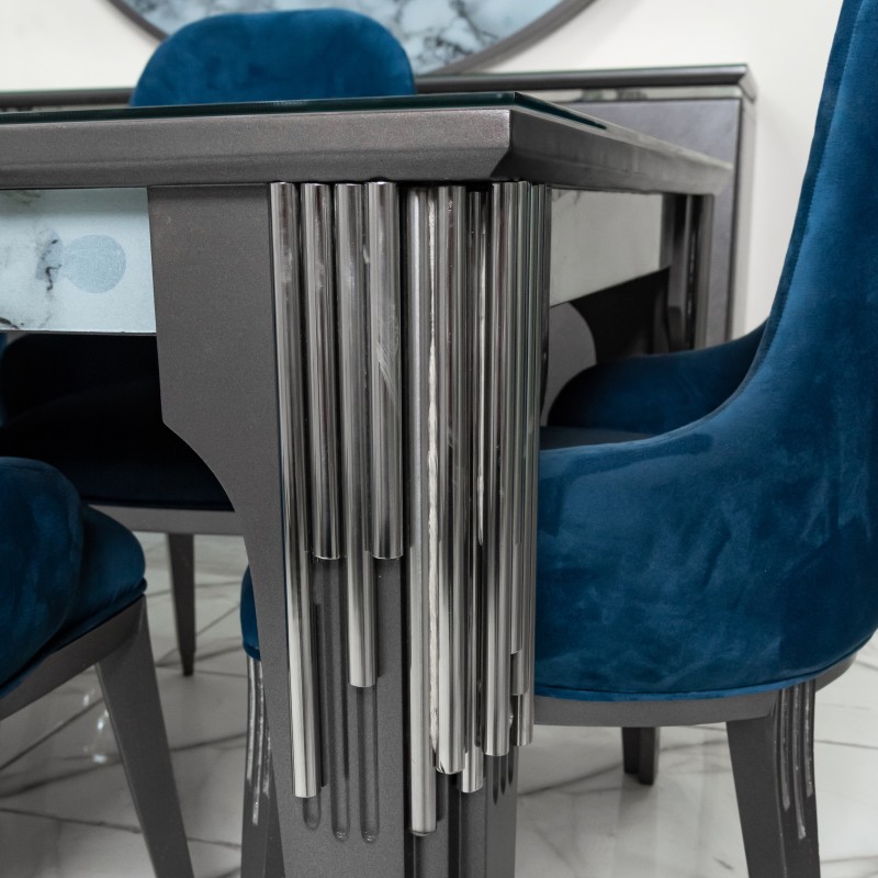 غرفة سفرة pipe مصنعة بالكامل من اجود الاخشاب الطبيعية ابلاكاش روسي و الاحمال خشب زان قشرة أرو مفجر طبيعي و قشرة تركي طبيعية مكونة من بوفيه بمقاس ٢ م ارتفاع ١ م ٤ دلفة soft close ٢ درج معالق معلق من الخشب الزان و برواز مضىء بستانلي معدني وزجاج رخامي نيش بمقاس ١٣٥ سم ارتفاع ٢٢٠ سم عمق ٥٥ سم ٢ درفة soft close ٣ رف زجاجي و ظهر مرايا و ٢ درج داخلي تخزين مزود بإضاءة علوية ترابيزة بمقاس ٢م*١ م ارتفاع ٧٨سم عدد ٦ كرسي من الخشب الزان تنجيد سوفت و قماش تركي