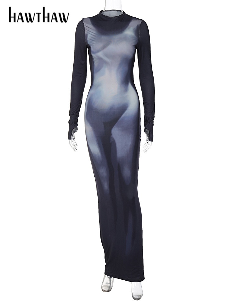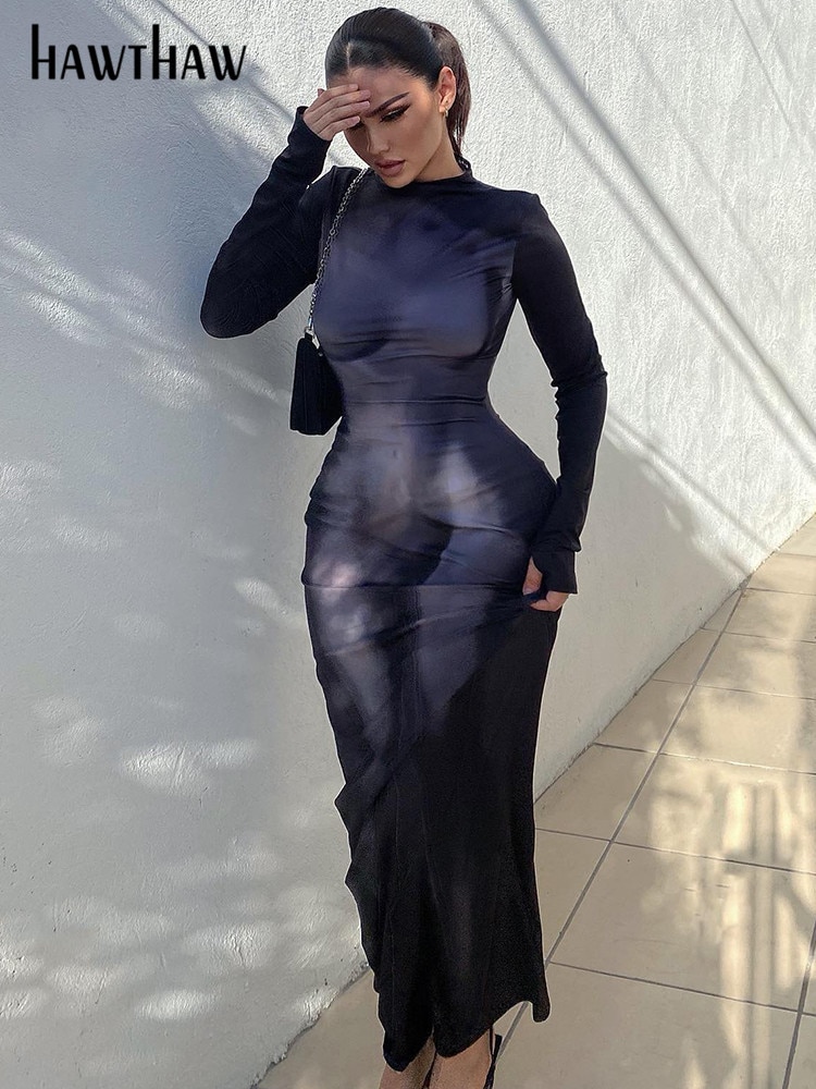 هاوثاو المرأة كم طويل نادي نادي Bodycon الشارع الشهير خريف فستان طويل 2022 الخريف الملابس بالجملة البنود للأعمال