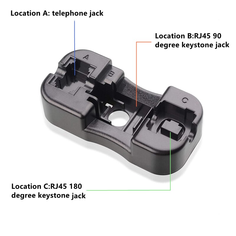 إنهاء أكثر أمنا مع أداة ملاكمة 110 حادة ؛ سطح آمن لإنهاء مع أداة 110 ، كرون أو 66 ، حامل أداة تخريم لإنهاء الرافعات شبه منحرف RJ45 90/180 درجة و RJ11/12 الرافعات شبه منحرف وحدات الهاتف توفير أساس متين ، السكن البلاستيك الهندسي يجعل السطح صلب ومقاومة للخدوش أو الشقوق ، قسط شبه منحرف جاك لكمة موقف يمنع الوقوف من تحطيم أو كسر عند إسقاط على الأرض. الراحة: لا مزيد من الحاجة لعقد جاك عند اللكم الأسلاك الذين تقطعت بهم السبل من الكابلات CAT5 أو Cat6 إيثرنت ، مقابس كيستون متوافقة مع 90 درجة و 180 درجة RJ11 الرافعات شبه منحرف و RJ45 الرافعات شبه منحرف. اضغط على فتح قاعدة للإفراج عن جاك شبه منحرف 90 درجة.