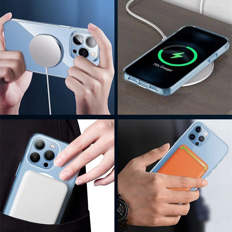 ل Magsafe محفظة حامل بطاقة واضح قضية الهاتف آيفون 14 13 12 11 برو ماكس X XR XS للصدمات المغناطيسي اللاسلكية تهمة غطاء