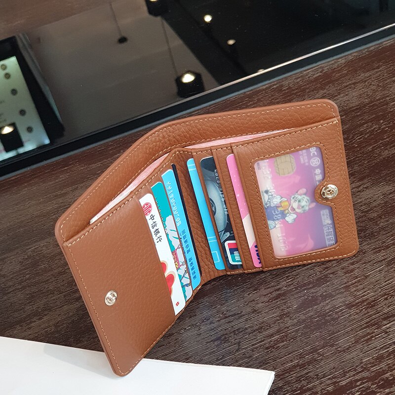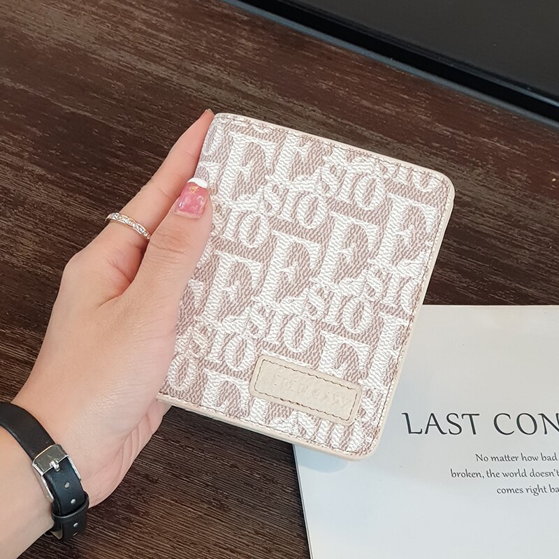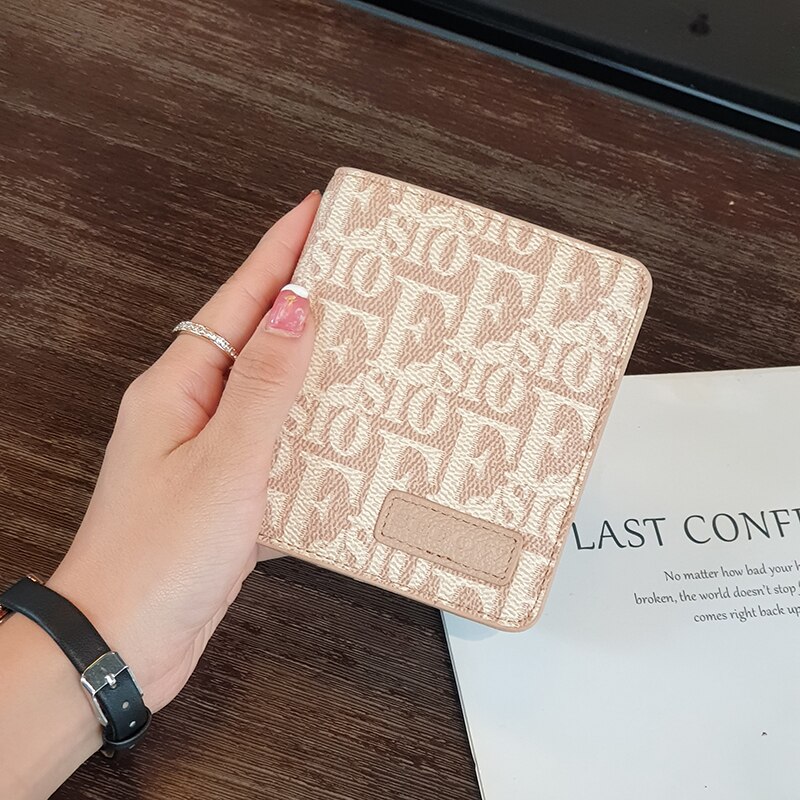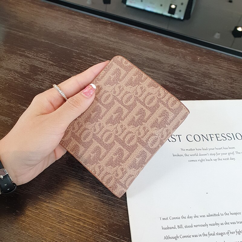 محفظة نسائية قصيرة جديدة لعام 2023 محافظ نسائية من الجلد الطبيعي محفظة جلد البقر مزدوجة الطي أصلية مزودة بطباعة حروف نسائية