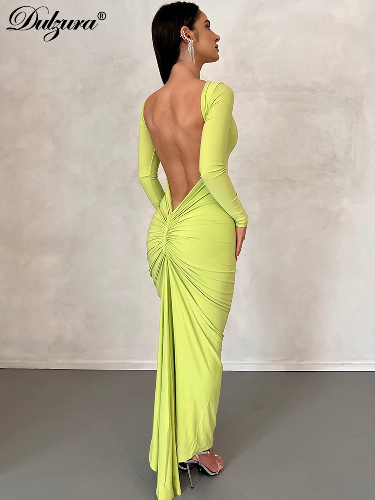 ملابس دولزورا للخريف Y2K مكشكشة وأكمام طويلة بدون ظهر ورقبة على شكل حرف o فساتين ميدي للنساء 2022 أنيقة لحفلات أعياد الميلاد والنوادي