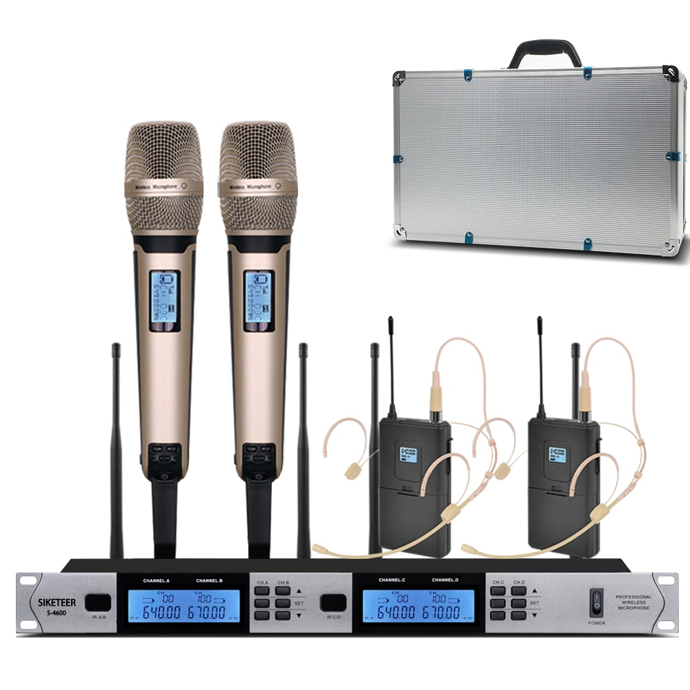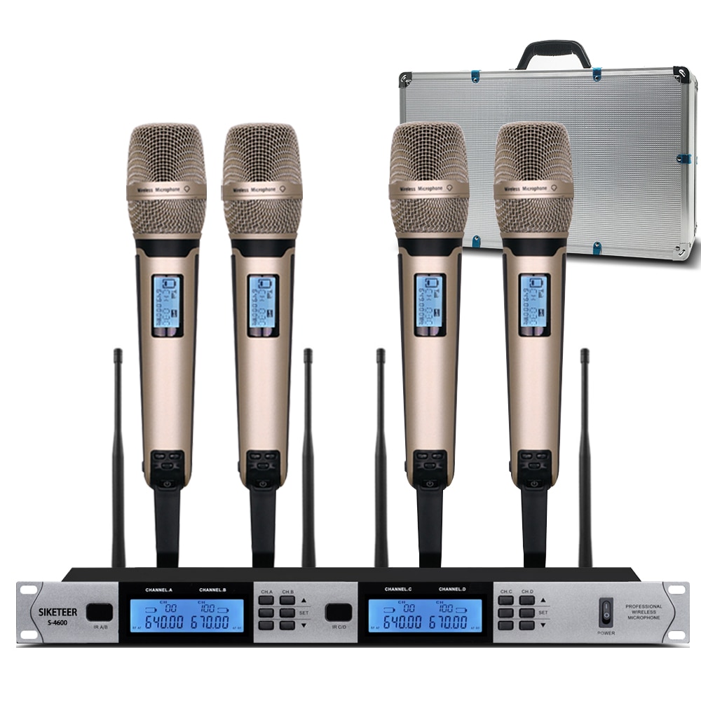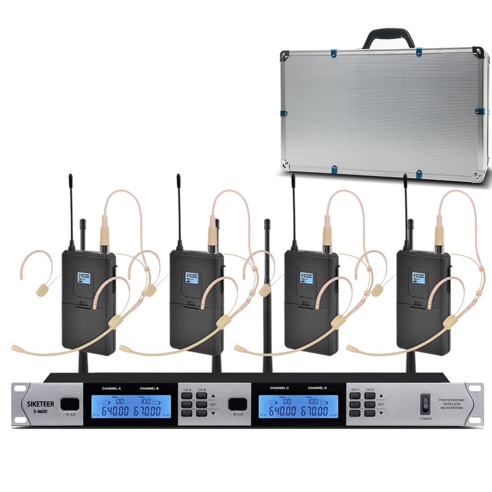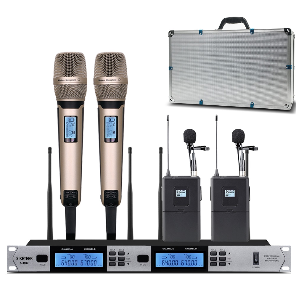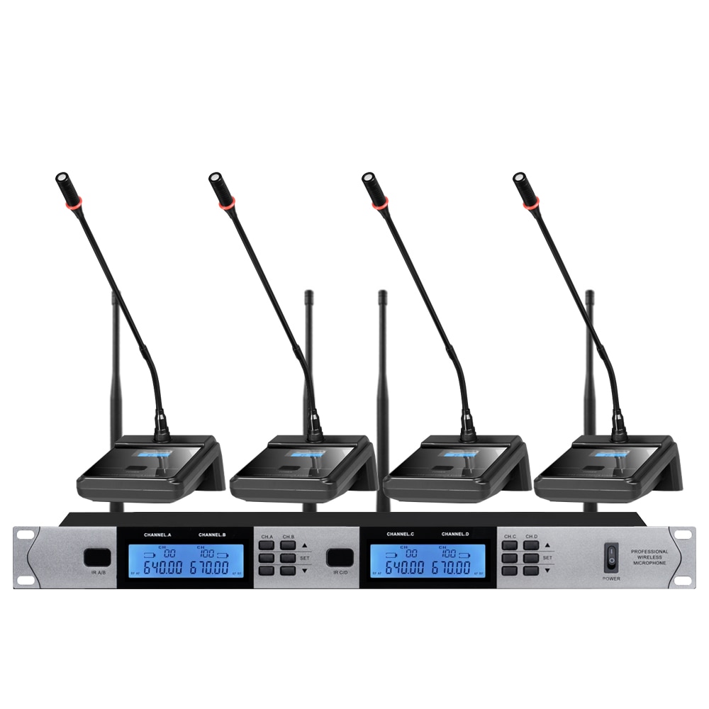 ميكروفون لاسلكي UHF احترافي ذو 4 قنوات ميكروفون مكثف من lavalier لمدرسة الكنيسة ميكروفون في الهواء الطلق