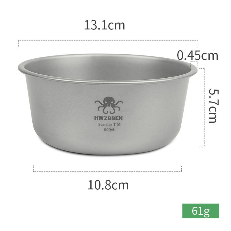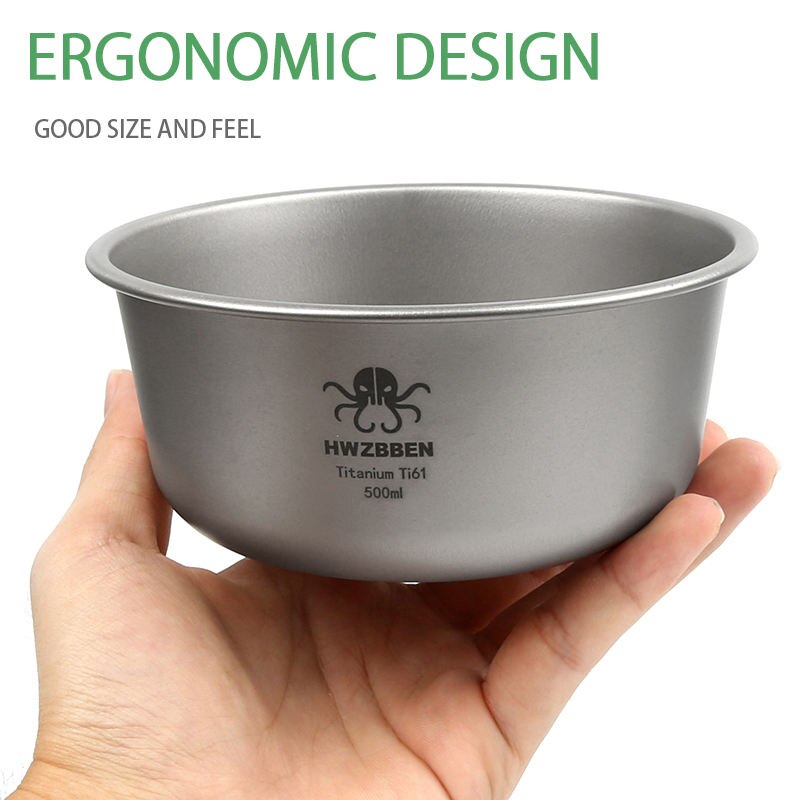 وعاء من التيتانيوم للأماكن الخارجية قابل للتكديس وعاء للتخييم قابل للنقل 500 مللي لنزهات السفر والتنزه خفيف الوزن متين أدوات المائدة