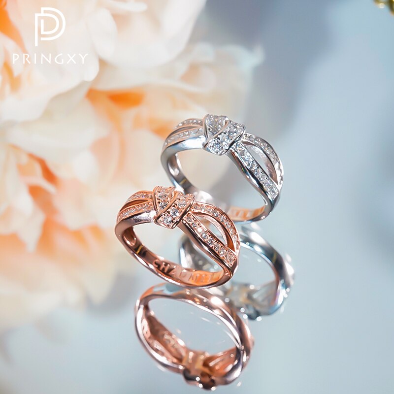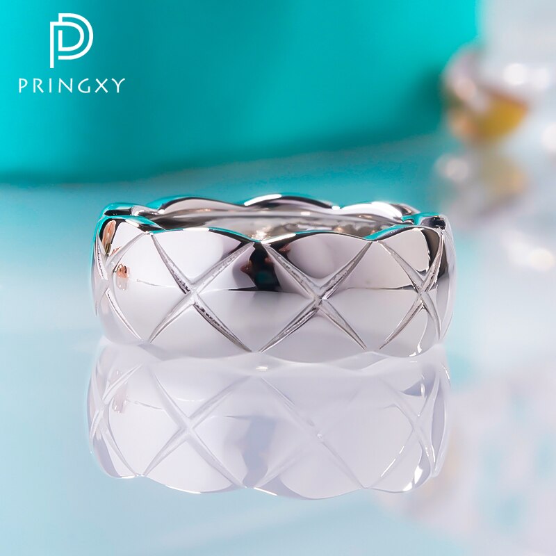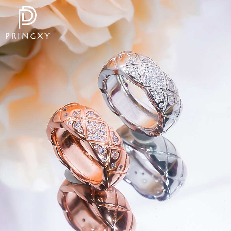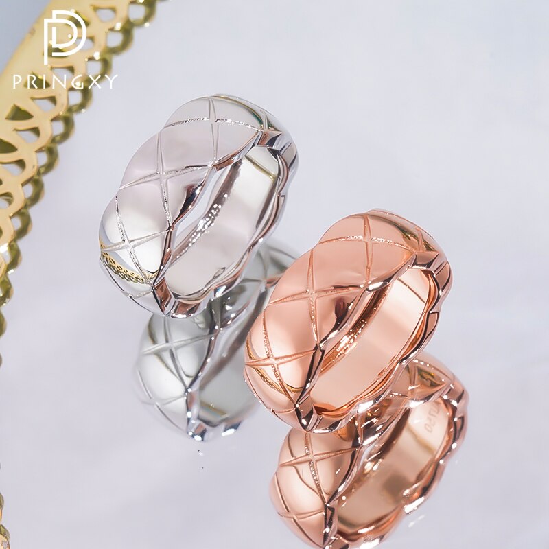 PRINGXY خاتم كلاسيكي S925 فضة 18k مطلية بالذهب الزركون العلامة التجارية خاتم هدية غرامة موضة مجوهرات للنساء بيج خمر