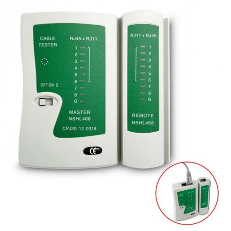 اختبار كابل RJ45 RJ11 Cat-5 Cat-6: إذا كانت جميع الكابلات تعمل ، فإن الأضواء تصبح خضراء من NO.1 & 2 إلى NO.7 & 8 بالتتابع. إذا لم يتم تشغيل أي ضوء أو تشغيله بشكل غير متتابع ، يتم كسر الكابلات.