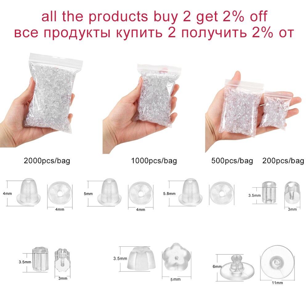سدادات سيليكون لحلق الأذن, مطاطية ناعمة، يتم وضعا خلف الأقراط، يمكنك القيام بها بنفسك، اكسسوارات، عدد 200-2000 قطعة