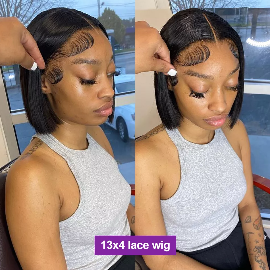 شعر مستعار بوب مستقيم شعر الإنسان 13x4 الدانتيل الباروكة أمامي 180% الكثافة قصيرة بوب الباروكات للنساء السود بوب الدانتيل الجبهة الباروكات شعر الإنسان