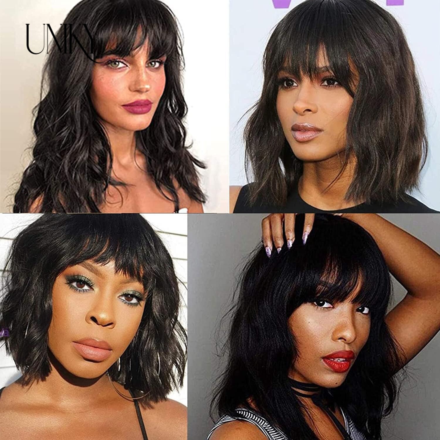 شعر مستعار قصير مموج مع شعر مستعار بوب مع الانفجارات للنساء السود ريمي البرازيلي بوب شعر مستعار مع الانفجارات فضفاض الجسم موجة شعر مستعار الطبيعية حليقة