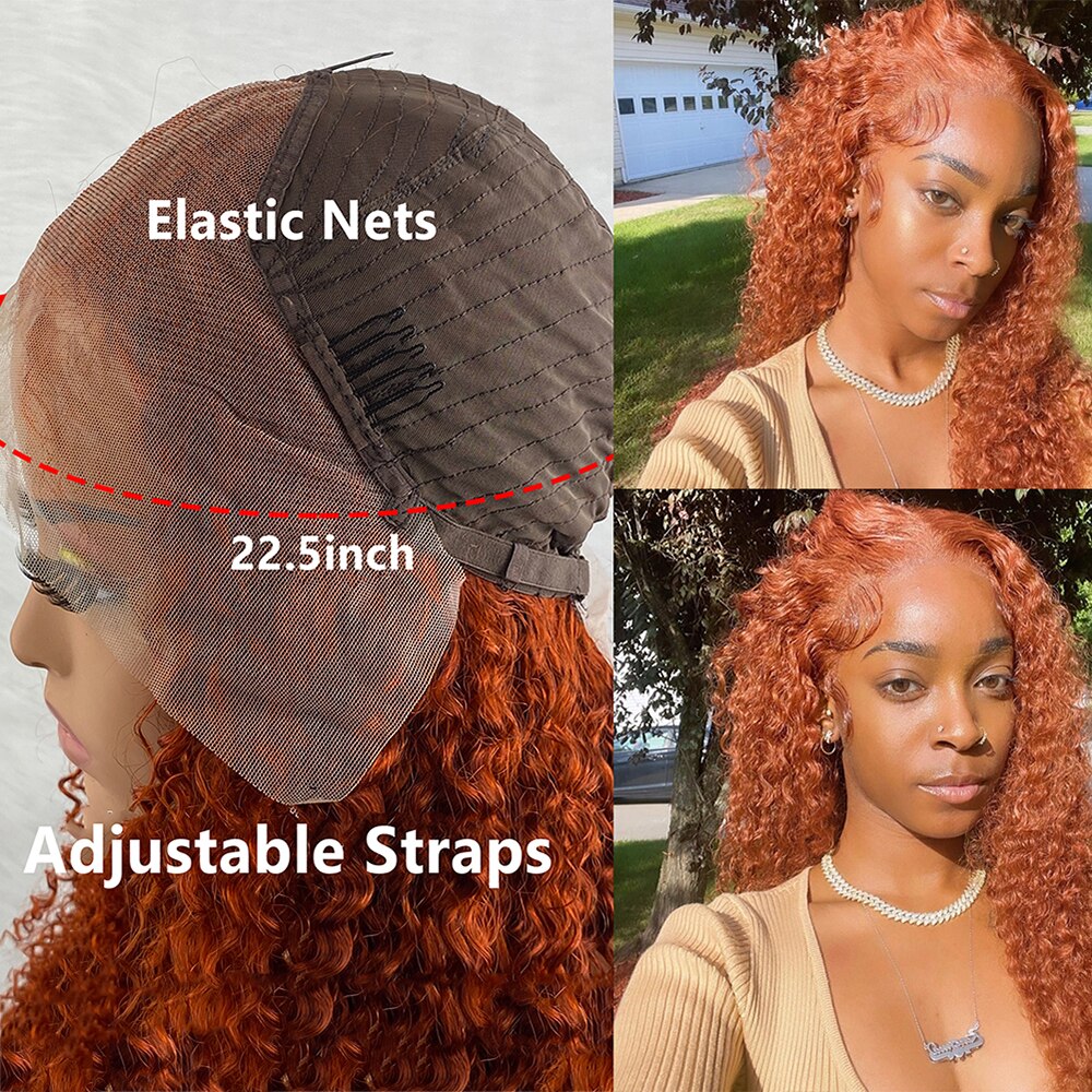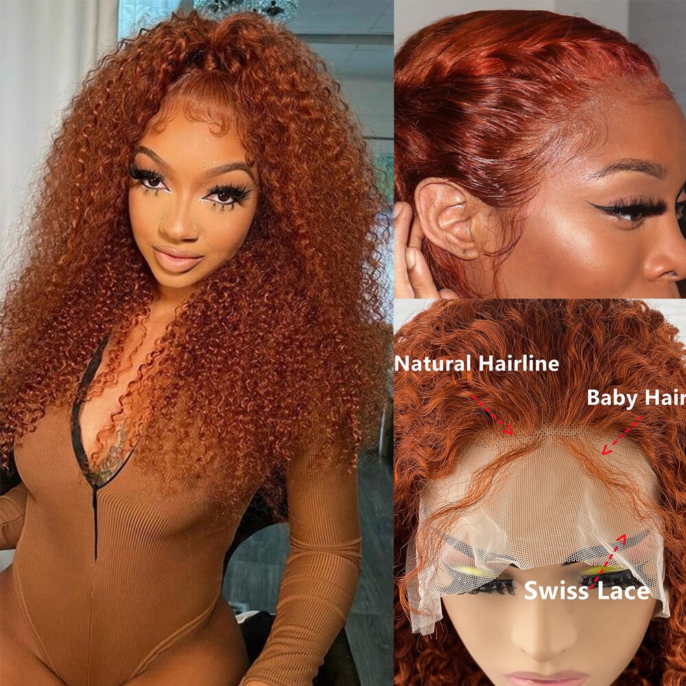 باروكات شعر أمامية من الدانتيل من الزنجبيل ، مادة الشعر البشري: شعر بشري مجعد بدرجة 8A غير معالج بنسبة 100% ، يبدو أكثر اكتمالا وطبيعية. ناعم وخالي من التشابك ، لا رائحة.