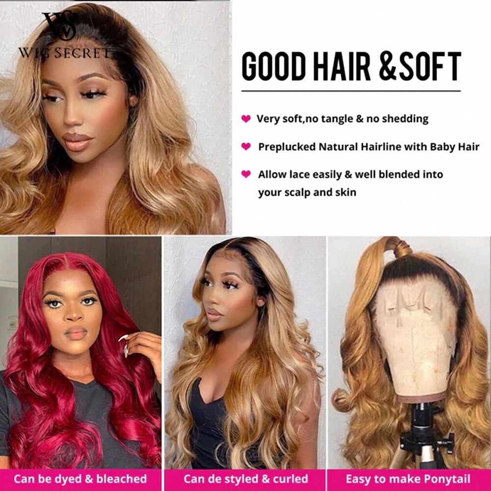 1B 27 أومبير الجسم موجة شفافة الدانتيل الجبهة الباروكة شعر الإنسان 13x4 4X4 العسل الجسم موجة الدانتيل الباروكة شعر مستعار البرازيلي الإنسان الباروكات
