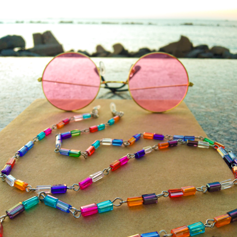 سلسلة نظارة كريستال طويل مع فواصل معدنية