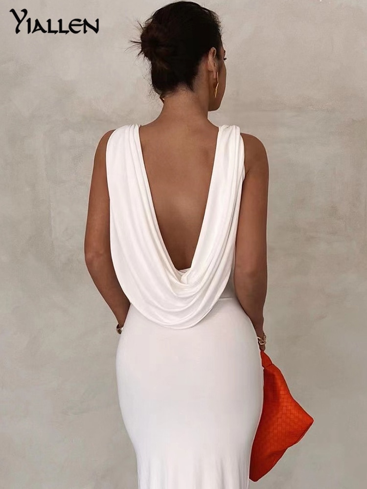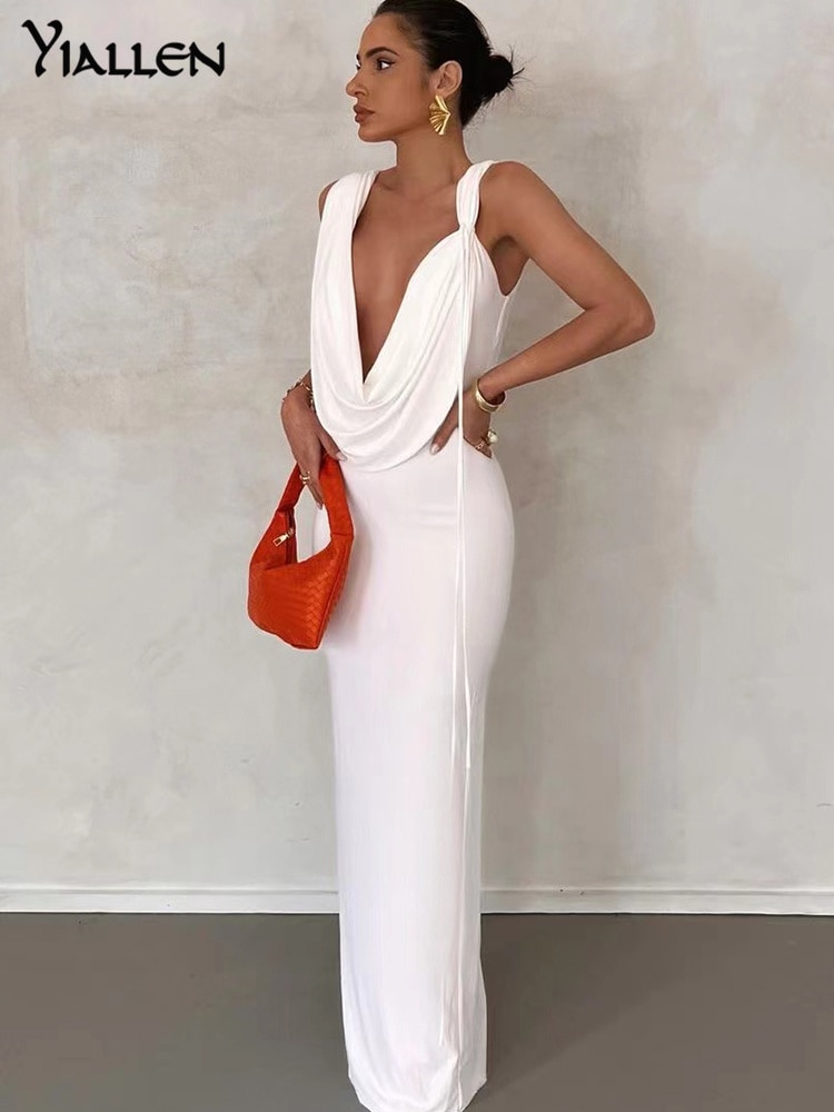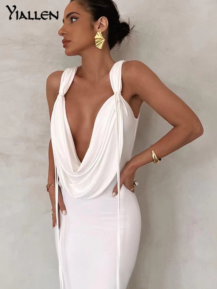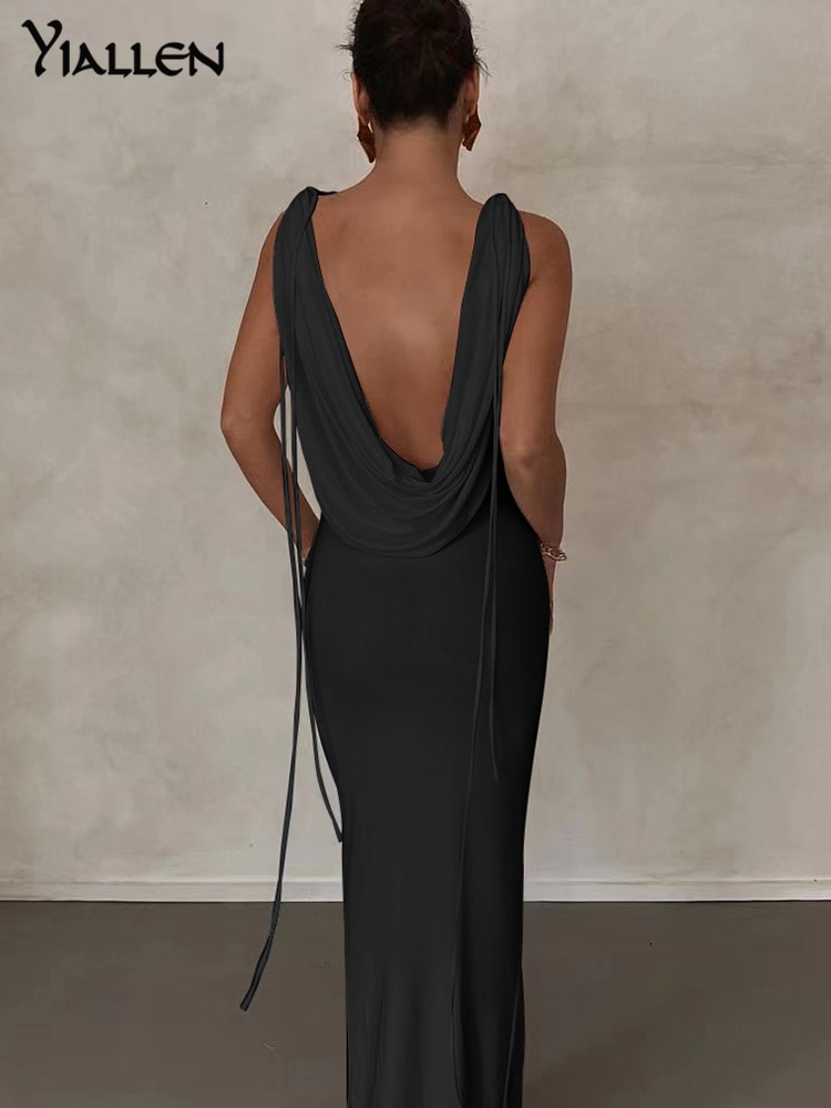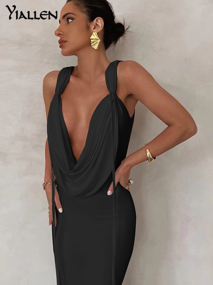Yiألين الخريف جديد أنثى مثير شارع اطلاق النار موضة الخامس طوق فستان 2022 بلا أكمام فستان طويل للمرأة العصرية ملابس الشارع الساخن