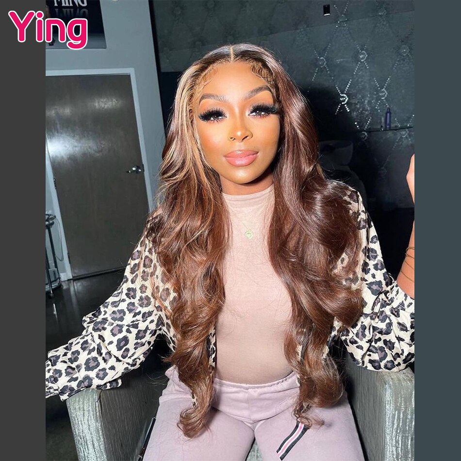يينغ الشعر البني الداكن 13x4 الدانتيل الجبهة الباروكة الشعر البشري 13x6 الجسم موجة الدانتيل الجبهة الباروكة قبل قطعها 5x5 HD الإنسان شعر مستعار للنساء