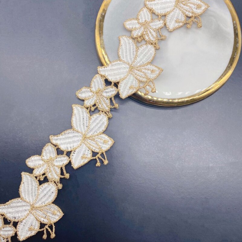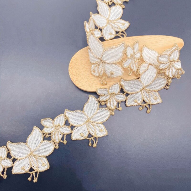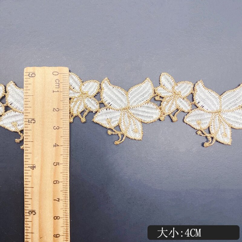 5-20Yds 4 سنتيمتر الذهبي واسعة حافة متموجة زهرة بيضاء النسيج لتقوم بها بنفسك الزفاف الذهب موضوع التطريز الدانتيل الاكسسوارات دمية فستان ، الصدرية ،