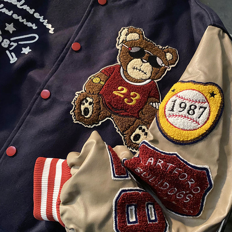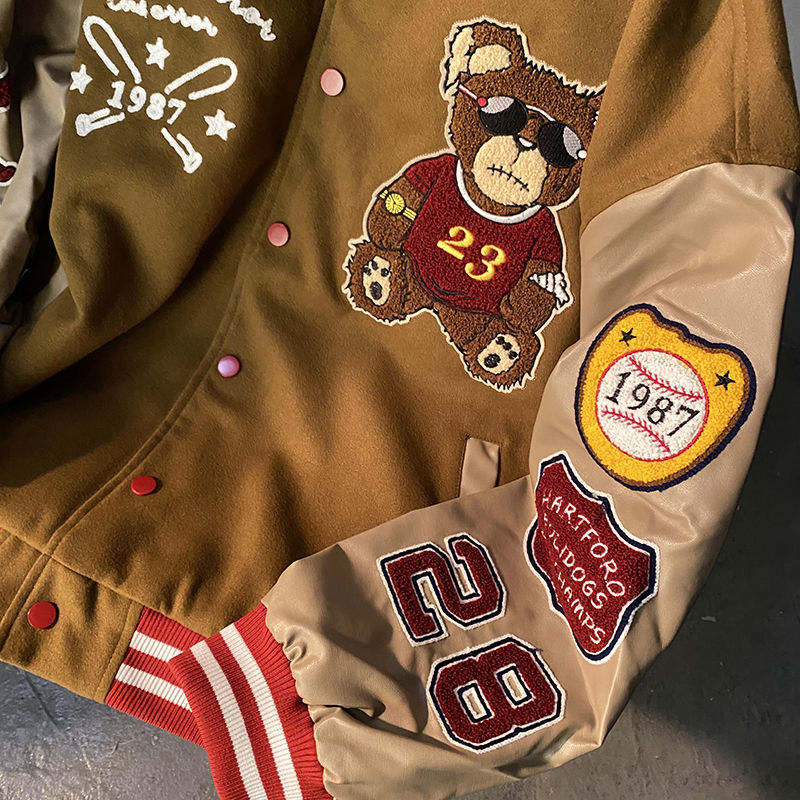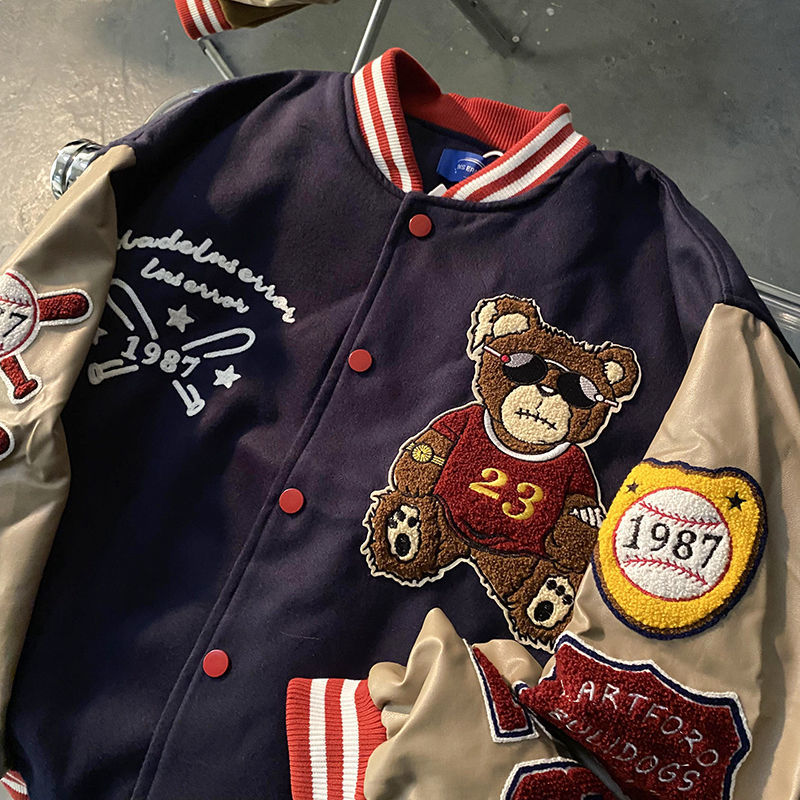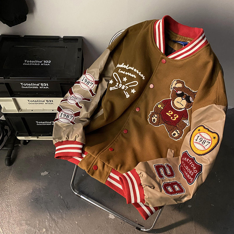 الرجعية الدب المطرزة زي بيسبول الرجال والنساء المد ins ربيع جديد فضفاض زوجين الشارع سترة سترة bomber سترة هوديي
