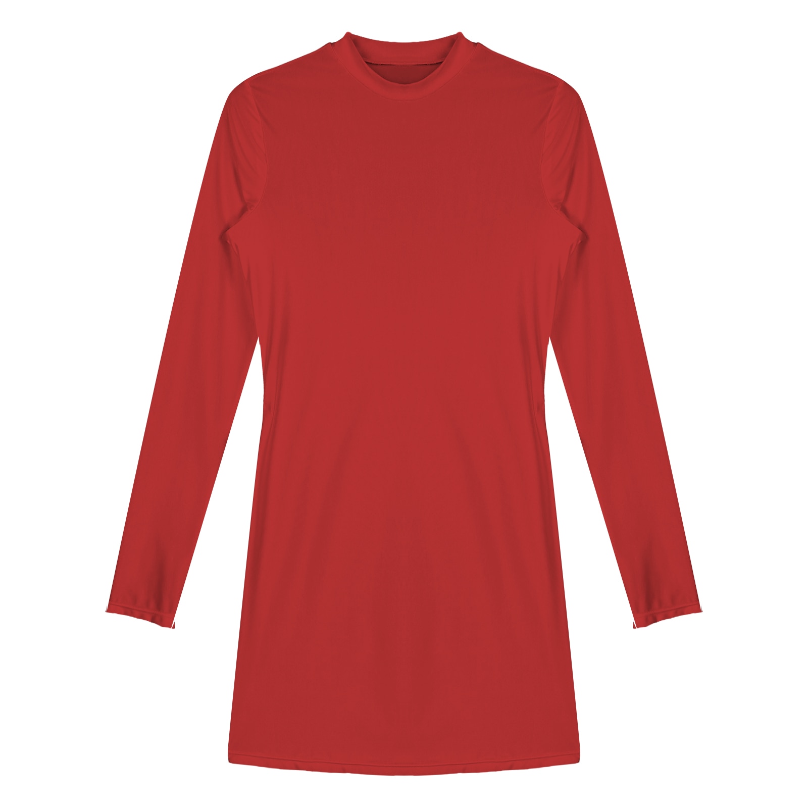 فستان بودي كون بأكمام طويلة للنساء ، رقبة وهمية ، لون سادة ، سحب على الإغلاق.