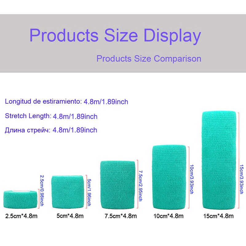 S: 2.5 سنتيمتر * 4.8 متر ؛ m: 5 سنتيمتر * 4.8 متر ؛ L:7.5 سنتيمتر * 4.8 متر ؛ XL:10 سنتيمتر * 4.8 متر
