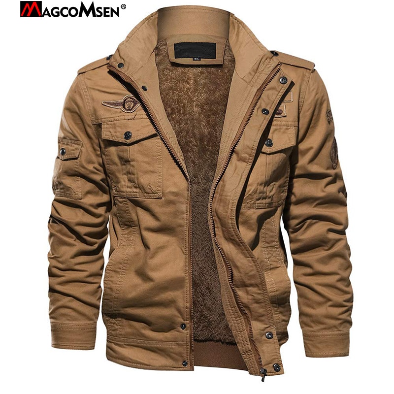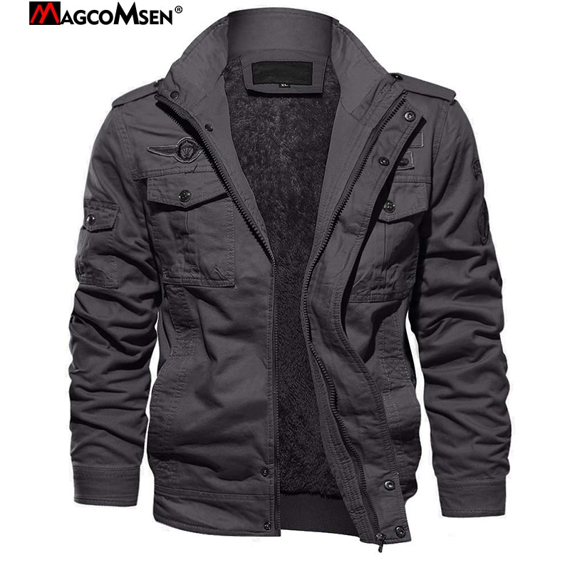MAGCOMSEN سلسلة في الهواء الطلق-الشتاء الصوف البضائع مفجر سترة الرجال
