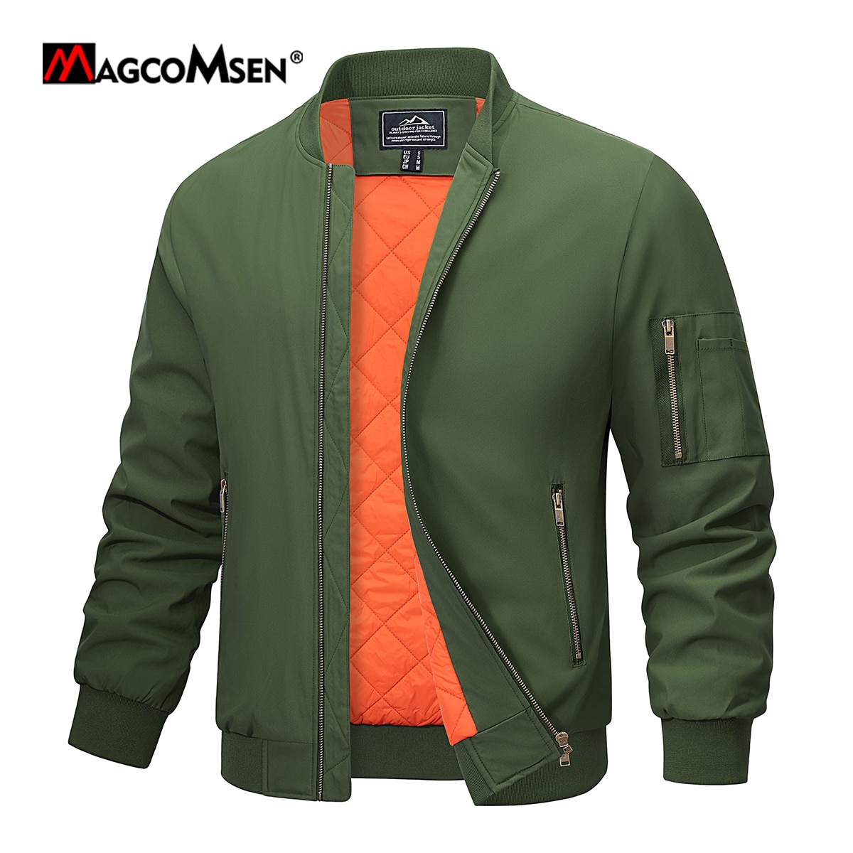 جاكت رجالي منفوخ من MAGCOMSEN للربيع/الخريف جاكيت دافئ بسحاب كامل مبطن جاكيت سميك مضاد للرياح ملابس خارجية للطيار